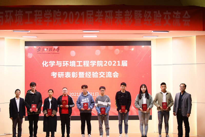 会议对全体考上研究生的同学进行了通报表扬,颁发了荣誉证书并授予2021届“考研优胜个人”荣誉称号,并请考上985高校,政治、英语、数学单科最高分者,总分400分以上的同学作为代表上台领奖。