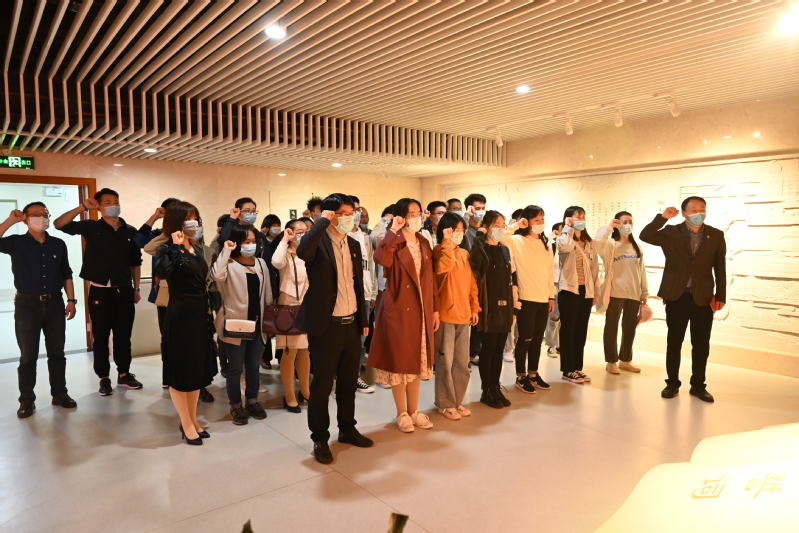 最后,公司党委副书记胡承功带领党员同志,在党旗下重温入党誓词,让每位同志再次接受心灵的净化和洗礼,提醒大家始终牢记共产党员的政治责任和历史使命,永葆共产党员的先进性和纯洁性。