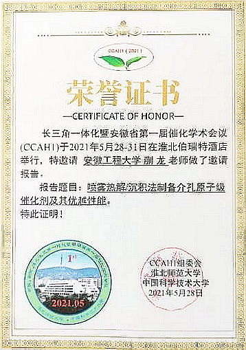 5月28-31日,长三角一体化暨安徽省首届催化学术会议(CCAH1)在淮北举行,来自中国科学技术大学、中科院沈阳金属研究所等省内外300余位专家学者参会,公司77779193永利蒯龙、石志盛和孙娜3位青年教师代表受邀参会。