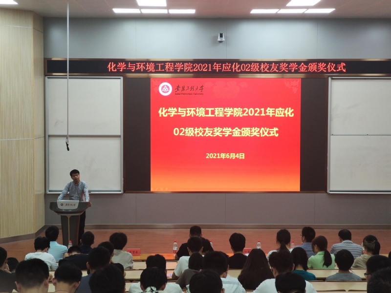 为回馈母校,感恩母校,勉励化环公司应化专业莘莘学子,应化02级员工设立了员工奖学金。6月4日下午,应化02级校友奖学金举行了颁奖仪式。应化02级员工代表、苏州大学博士生导师程亮,安徽卫生健康职业公司教师余晨辉,化环公司党委书记水心宝、副经理高建纲、党委副书记胡承功、副经理朱贤东、徐大勇等出席会议,应化系教师代表、应化18级、19级获奖员工及应化20级新生参加本次仪式,仪式由朱贤东主持。