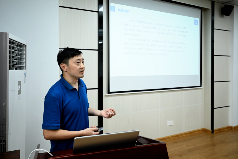 黄江胜博士毕业于武汉工程大学材料科学与工程公司,主要从事磷灰石纳米材料的制备及其应用方面的工作,目前在磷灰石的制备工艺优化、设计和形貌控制机理等方面取得了很有意义的研究成果。他的报告题目为“模板诱导/均相沉淀法制备不同形貌锶羟基磷灰石及其形貌控制机理研究”,采用模板诱导/均相沉淀法,利用pH调控剂(尿素)的水解平衡、溶液酸碱平衡和离子沉淀平衡营造的均相体系,结合有机模板剂的分子结构能诱导溶液中Sr2+、[H2PO4-] 和[OH-]有序的分布,采用特定的有机模板剂使Sr2+、[H2PO4-]和[OH-]在指定的SrHAp晶面上生长,达到控制制备三种不同形貌(六方柱、片状和多孔微球)SrHAp。采用有机/无机杂化、浓度梯度相变推动力、固液相界面能γ(hkl)和晶体界面热力学驱动力等理论,探讨了模板诱导/均相沉淀法制备三种不同形貌SrHAp的晶形控制机理。
