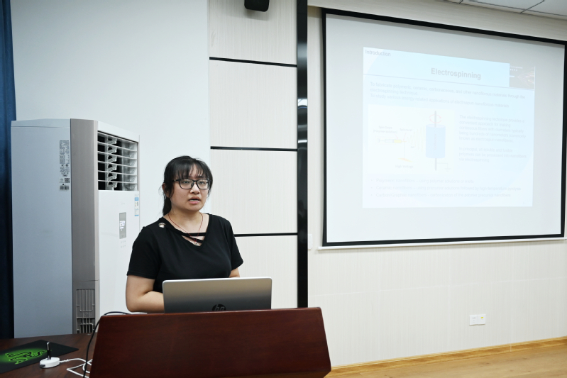 马晓婧博士毕业于美国南达科他矿业理工大学,主要从事静电纺丝纳米纤维和能源相关应用的研究,在她的“静电纺丝纳米纤维膜在能源相关领域的应用”的报告中,介绍了静电纺丝技术以及该技术在纳米材料领域的快速发展和其极具潜力的发展前景。在报告中她分享了以静电纺丝制备木质素基碳纳米纤维膜和PAN基碳纳米纤维膜,并将它们分别应用在超级电容器和锂离子电池方面的应用研究。