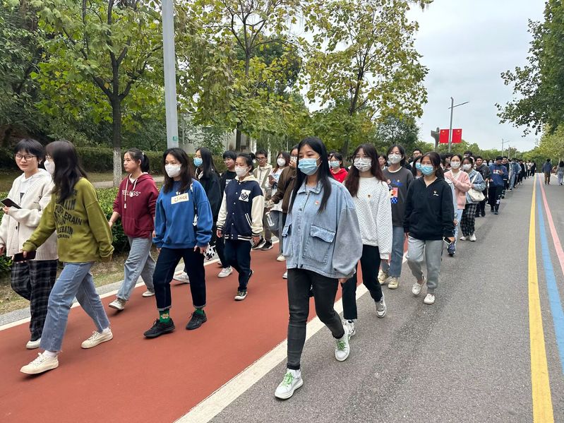 各员工党支部书记、新生辅导员带领全体员工党员、2022级新生齐聚雕塑公园南门,本次徒步走以雕塑公园南门为起点,徒步至芜湖市烈士陵园。随着一声出发号令,所有同学以青春昂扬的姿态开始了红色徒步走,徒步过程中,同学们精神抖擞,步伐矫健,欣赏着沿途美丽的风景,感受着宜人秋色带来的精神愉悦,充分展现了进取、无畏、开拓的青春风貌。