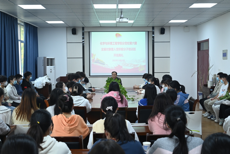 应化202班王艺君同学代表第六期发展对象培训班学员在仪式上做了发言,她表示,将认真学习贯彻党的二十大精神,以党员标准严格要求自己,遵守培训班各项规定,争做新时代的青年老员工。王豪豪同学作为入党积极分子学员代表发言,他表示,作为新时代老员工入党积极分子,会认真学习党的基本理论和党的二十大精神,坚定信仰,脚踏实地、努力学习,争取早日加入中国共产党。