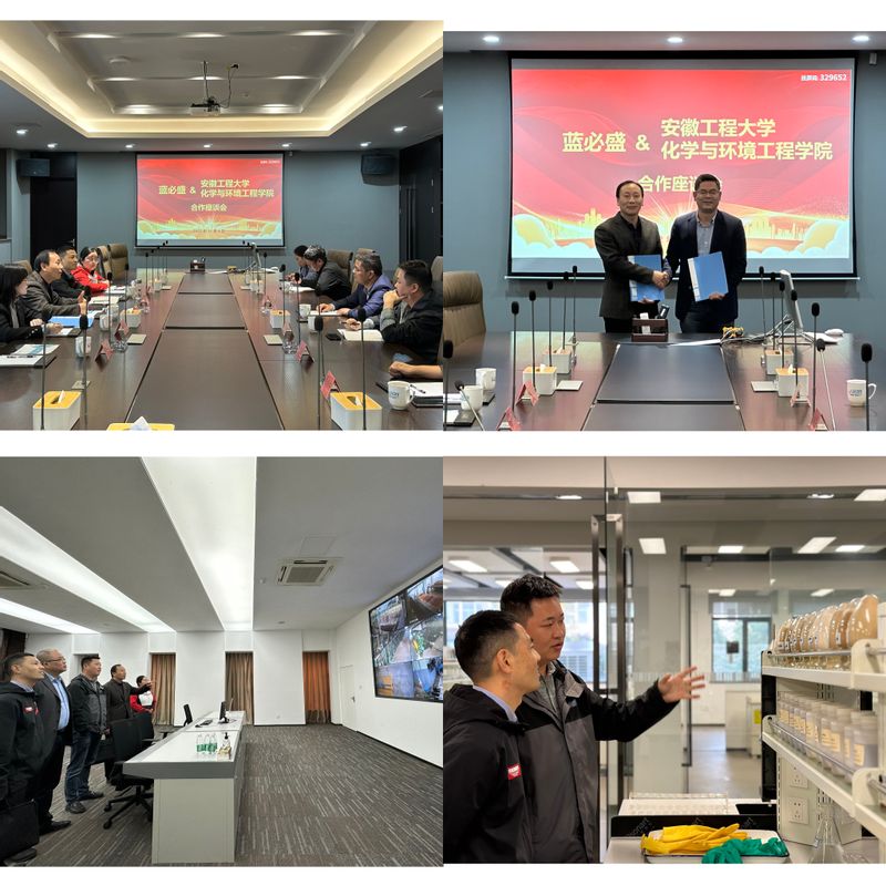 公司一行参观了江苏蓝必盛化工环保股份有限公司的展厅、实验室、科研设备等,了解了企业的发展历程,以及疫情以来公司的业务经营状况,并开展了座谈交流。座谈会上,蓝必盛董事长蒋伟群介绍了公司的发展经营状况,蓝必盛是一家环境评估、环境治理和技术服务为一体的化工污染治理综合服务公司,致力于为化工企业及园区的污染治理提供废水、废气、固废系统化解决方案,对高水平人才需求较大,希望以此次交流为契机,与公司在各方面加强联系、紧密合作,他同时感谢学经理期以来对公司在产学研合作、人才资源等方面支持。胡承功介绍了公司毕业生基本情况、毕业生就业工作的部署安排,表示希望双方加强在人才培养、毕业生就业等方面的合作。徐大勇就公司团队力量、学科学位建设情况、专业发展等方面做了详细介绍,表示希望在产学研上深化合作,实现科技成果的转移。