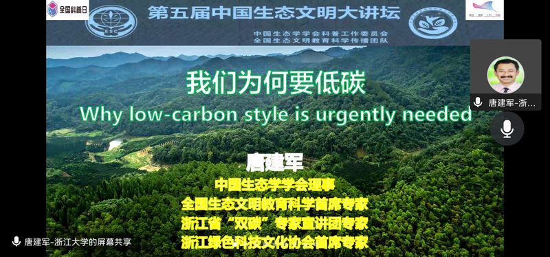 由中国生态学学会、芜湖市科学技术协会和安徽师范大学共同主办的“第五届中国生态文明大讲坛”于11月25日上午9点在海螺国际会议中心开幕。公司77779193永利作为其中的一个分会场,在25日下午3点邀请到此次大讲堂的主讲人,浙江大学卓越A岗教授、全国生态学优秀科技工作者、全国生态文明科学教育首席专家、中国生态学学会理事兼科普工作委员会常务副主任唐建军教授做线上报告。