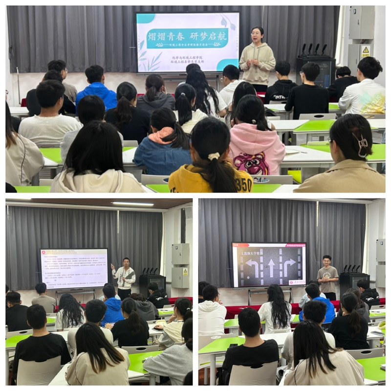 为推进学习贯彻习近平新时代中国特色社会主义思想主题教育,环境工程系员工党支部坚持以“三抓”工作为统领,深化校“三全六专”育人工作实践,依托员工党支部建设带动环境工程专业学风建设, 近日,在院员工能力发展中心召开2023年考研经验交流分享会。由考取南京理工大学、华东师范大学、合肥工业大学等知名院校的6名党员员工分享成功经验和备考技巧,环境工程专业同学参加交流。