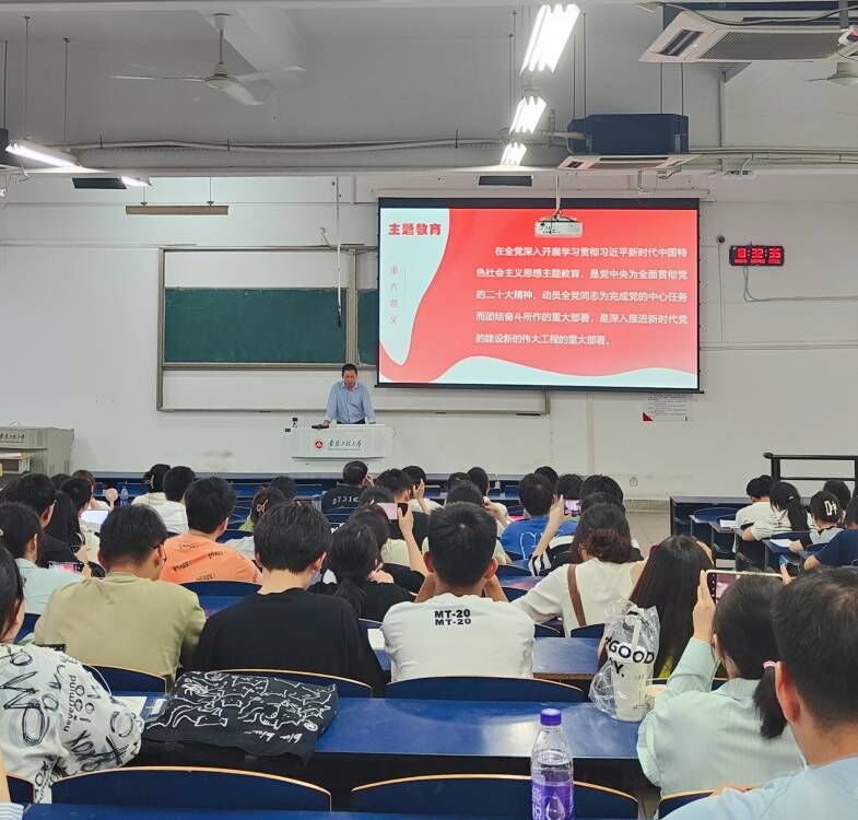 为持续深入推进学习贯彻习近平新时代中国特色社会主义思想主题教育,让主题教育根植于心见诸于行,5月17日下午,化学与环境工程公司党委书记章兵在5J217为化环公司分党校第七期入党积极分子培训班、第三期预备党员培训班170余名学员上《学习贯彻习近平新时代中国特色社会主义思想主题教育》专题党课。原应用数理系党总支书记苏自林到会督查并作指导。