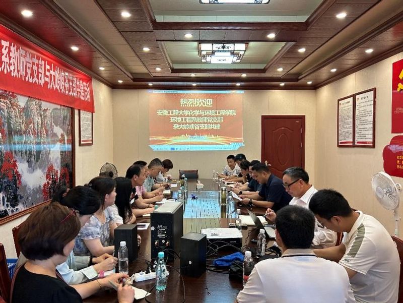 共建对接交流会上,七都镇党委副书记张亚楠对化环公司教师党支部教师的到来表示热烈的欢迎,他介绍了七都镇的基本情况,镇政府高度重视产学研融合发展工作, 将大力支持中小企业与高校院所开展产学研协同创新;安徽大岭峡谷饮料有限公司董事长王超勤详细介绍了企业发展历程、企业技术需求及面临的技术瓶颈问题等;公司党支部书记廖中平结合企业的发展和经营,介绍了党支部的建设成果以及在企业发展中的党支部战斗堡垒作用发挥的典型作法;环工系教工党支部书记杨晓凡介绍了支部基层党建工作概况以及支部共建成果,并与党员教师围绕、企业生产技术等主题和共建支部开展了深入交流。