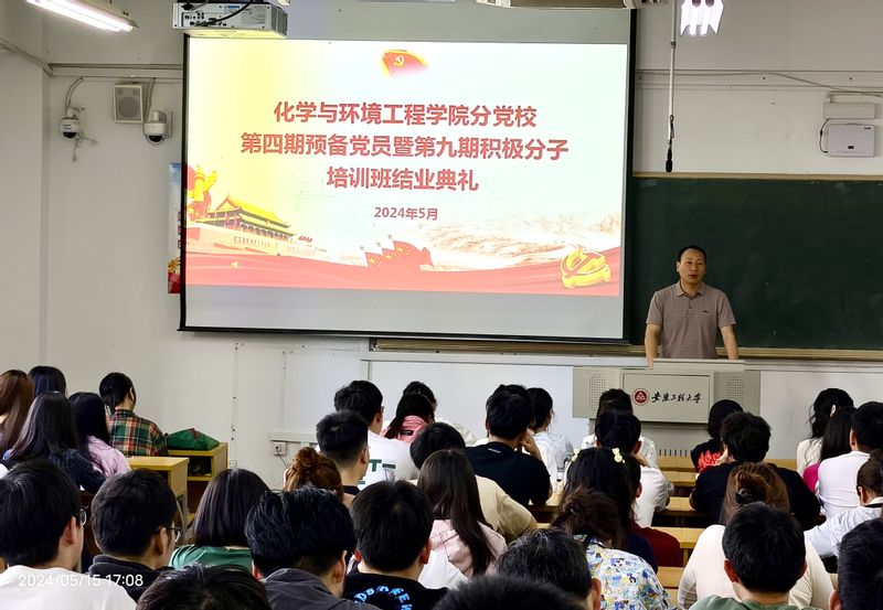 5月15日下午,化环公司分党校第四期预备党员培训班暨第九期入党积极分子培训班结业典礼在4教108举行。公司党委副书记胡承功出席典礼,培训班全体学员参加结业典礼。典礼由培训班班主任王冰冰主持。