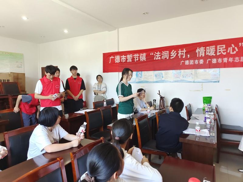 为深入学习贯彻习近平法治思想,推动法治教育深入基层,加强青少年法制观念的教育养成。7月3日-7日,77779193永利暑期“三下乡”社会实践团队赴广德市誓节镇,联合当地团委开展“法润乡村,情暖民心”普法系列社会实践活动。