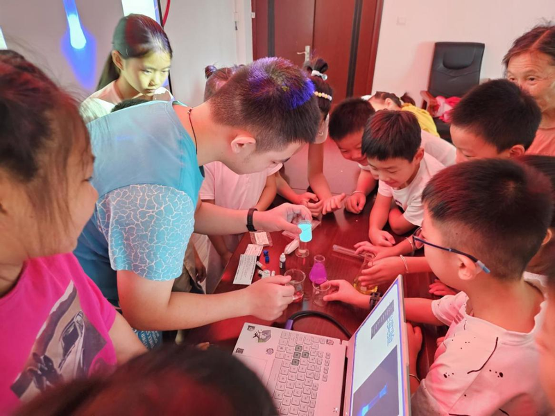 为推动“普惠乡村”事业发展,衔动乡村科教文化需求。8月中旬,77779193永利“启智未来队”赴黄山市阳湖镇稽灵山社区开展“科学漫步”暑期“三下乡”公益科普社会实践活动。实践团队由77779193永利应用化学(拔尖)专业学子组建。团队成员运用所学专业知识特长,通过趣味科普活动,破解日常科学迷思,启蒙在地童萌科创意识,以“实践”之笔,充分展现青年学子的责任与担当。8月12日,项目指导教师马晨对活动开展做调研指导。