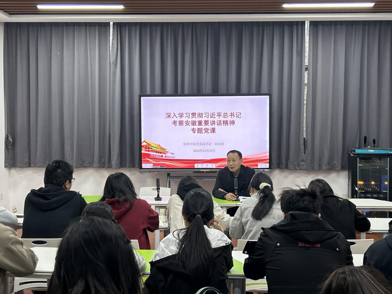 为深入学习贯彻习近平总书记考察安徽重要讲话精神,11月12日下午,化学与环境工程公司党委副书记胡承功在公司员工能力发展中心为化环公司分党校第十期入党积极分子培训班、第十期发展对象培训班全体学员讲授学习贯彻习近平总书记考察安徽重要讲话精神专题党课。