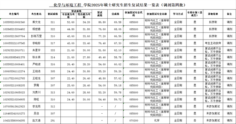 2025年硕士研究生招生复试结果一览表(调剂第四批)