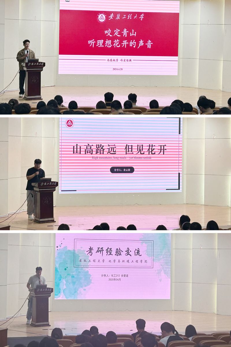 公司三位优秀青年代表——高鑫程、余云涛、余爱建,分别分享了他们的成长故事和奋斗经历。高鑫程同学讲述了自己在参军入伍报效祖国、学业上的刻苦钻研和取得的优异成绩,鼓励同学们树立目标,努力拼搏;余云涛同学分享了他在学术科研、社会实践、志愿服务中的所见所闻和收获的成长,号召同学们积极参加专业科研竞赛、积极参加公司第二课堂建设,在综合素质上不断提升自己;余爱建同学则通过自己的考研经历,从考研择校、备考、复试方面分享自己的学习体会与经验。三名同学今年分别被南京大学、中国科学技术大学、大连理工大学拟录取为硕士研究生,他们的故事生动感人,充满力量,赢得了现场师生的阵阵掌声。应化拔尖221班王嘉诚表示,他将以优秀学长为标杆,努力提升自己,用实际行动践行五四精神,在接下来的学习中将不断严格要求自己,在学科竞赛、考研目标、社会实践中书写属于自己的精彩篇章。