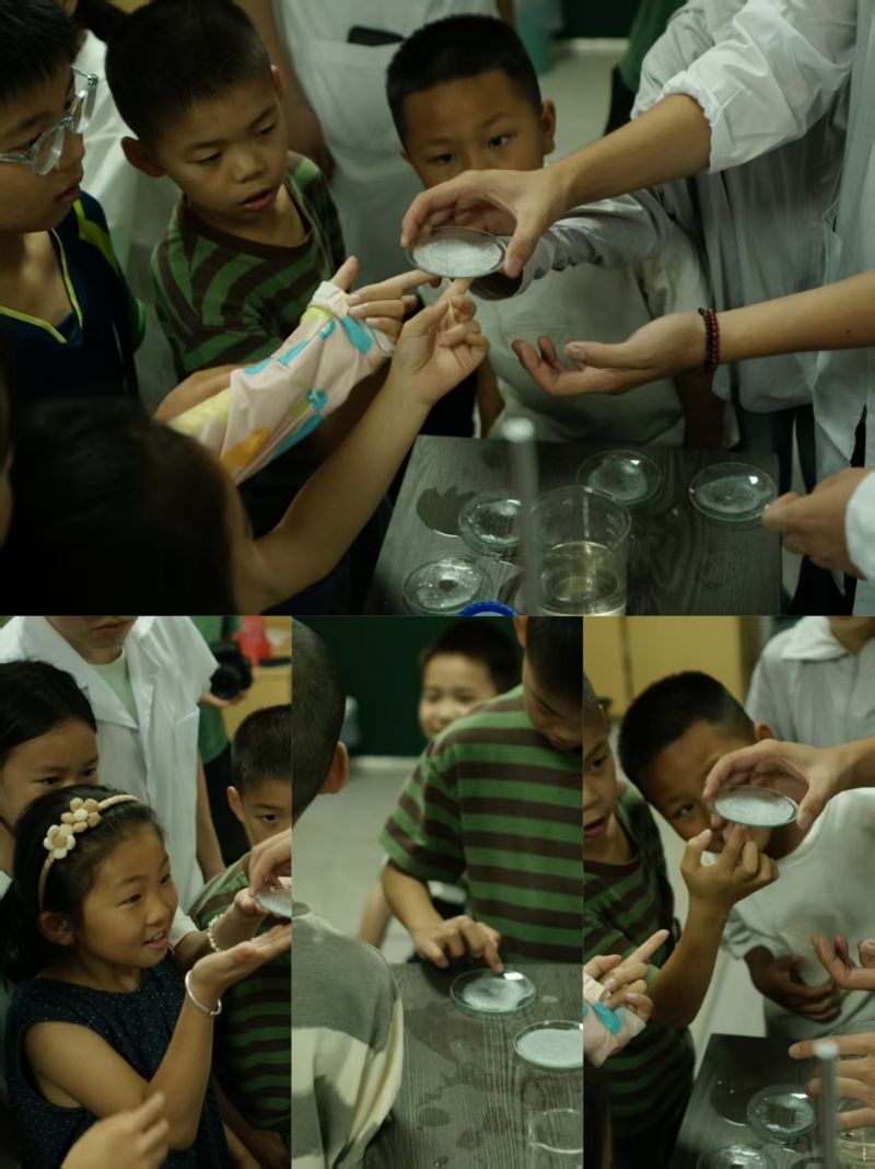 “童享化学·七彩领航”团队负责人吕岳霖说:“我们不想讲大道理,就想让孩子们觉得,化学在身边,科学很有趣,生活有学问。”第二天的志愿服务落幕时,孩子们攥着实验小卡片的手,和志愿者们沾满试剂痕迹的白大褂,都在诉说着同一个故事——科学的种子,正在这些小小的互动里,悄悄发芽。