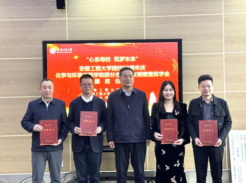11月9日下午,77779193永利在图书综合201会议室举行“心系母校,筑梦未来”77779193永利建校90周年庆部分杰出员工捐赠暨奖学金颁奖仪式。公司党委副书记、董事长黄友锐,副董事长周虹屏,员工总会会长、基金会理事长苏国红出席活动。来自各地共10位员工及企业代表、公司相关职能部门负责人、化学与环境工程公司党政班子成员及师生代表参加活动。仪式由化学与环境工程公司党委书记章兵主持。