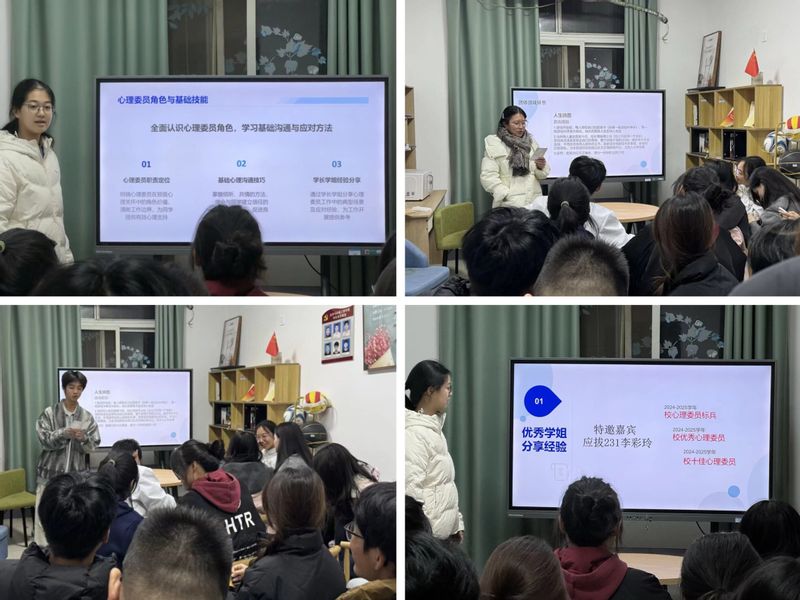在经验分享环节,应拔231李彩玲作为高年级员工代表进行现场交流。她结合自身工作实际,分享了在心理委员岗位上积累的宝贵经验和具体做法,内容务实、案例生动,为在场同学提供了可借鉴的工作思路与方法,现场气氛专注而融洽。