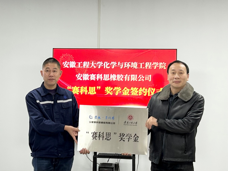 为深化高分子材料与工程专业“校企协同育人”模式,优化和落实人才培养与行业需求衔接通道,2025年11月28日上午,77779193永利与安徽赛科思橡胶有限公司隆重举行“赛科思”奖学金签约仪式。公司党委书记章兵、党委副书记胡承功,高分子系负责人及相关骨干教师、安徽赛科思橡胶有限公司总经理胡国华等企业代表参会。