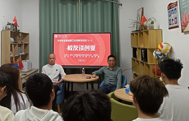 为进一步加强就业创业教育工作,激励同学们努力学习,励志成才,4月26日下午4点,化环公司生涯教育工作坊系列活动员工谈创业在好“室”光、“化”家常员工服务站举办。2010届员工、芜湖诺威化学技术有限公司总经理吴杰与同学们分享了自己的创业经历和感悟,活动由张宁主持。